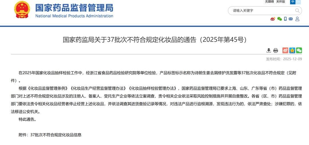 近日,国家药监局公布关于37批次不符合规定化妆品的通告,涉及洗发水、沐浴露、染发膏、面膜、防晒乳、护发素等多类产品。其中,“朵望”婴童护肤品被检出了化妆品禁用的致癌物质“丙烯酰胺”。